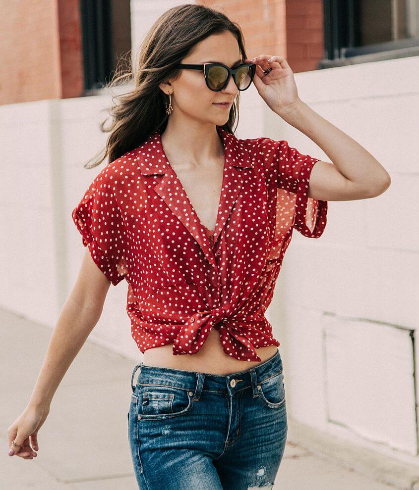 H I P Polka Dot Blouse Women S Shirts Blouses In Red Buckle